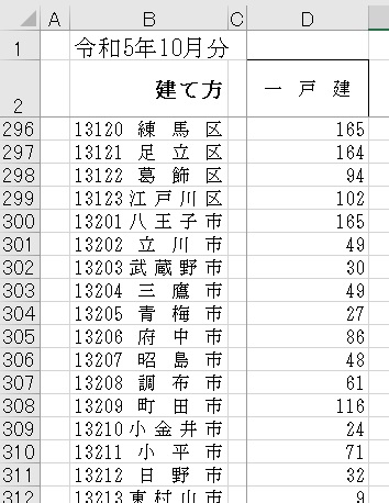 下記のエクセルデーターは、各市ごとの新築戸建て数になります。